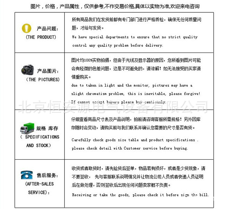 1.我公司對生產(chǎn)的全部產(chǎn)品實行“三包”,保證產(chǎn)品采用較佳材料和一流工藝,符合合同規(guī)定的質(zhì)量﹑規(guī)定和性能要求。保證其合同設(shè)備經(jīng)過正確安裝﹑合理操作和維護保養(yǎng),在合同設(shè)備使用期內(nèi)運轉(zhuǎn)良好,在規(guī)定的質(zhì)量保證期內(nèi),對由于設(shè)計工藝或材料的缺陷而造成的故障負責,免費負責修理或更換有缺陷的電器元件。